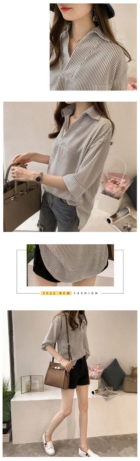 2分鐘前新品上市,勁爆特殺!全場大放送,單件低至NT$432,2020新款夏裝中長款韓版寬松顯瘦條紋襯衫女七分袖,廠家直銷,超值優惠,買到賺到!過後漲價! - 【買一送二】任選3件 僅需NT$1298,單件低至432