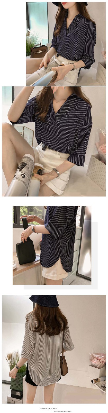 12分鐘前新品上市,勁爆特殺!全場大放送,單件低至NT$432,2020新款夏裝中長款韓版寬松顯瘦條紋襯衫女七分袖,廠家直銷,超值優惠,買到賺到!過後漲價! - 【超級氣質條紋襯衫】任選1件 僅需NT$899
