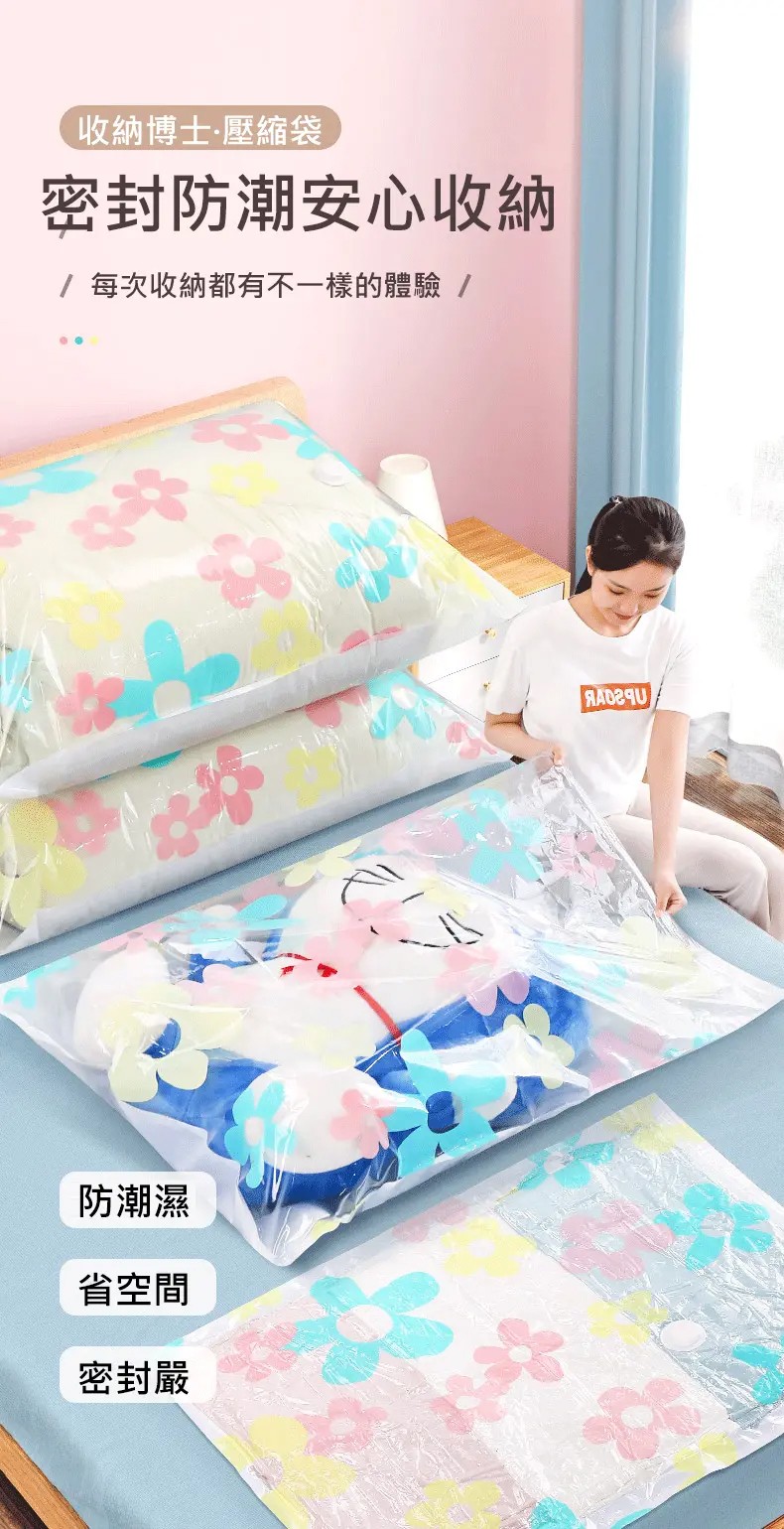 4分鐘前掛式真空壓縮袋推薦,輕鬆節省衣櫃空間 - 【買5送5】尺寸任選★贈電動抽氣機★ NT$1299