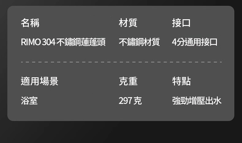 4分鐘前RIMO 304不鏽鋼增壓蓮蓬頭 - RIMO 304不鏽鋼增壓蓮蓬頭(免運二入組)NT$1699